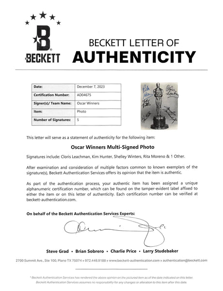 Oscar Winners (5) Leachman, Hunter, Winters, +2 More Signed 8x10 B&W Photo BAS