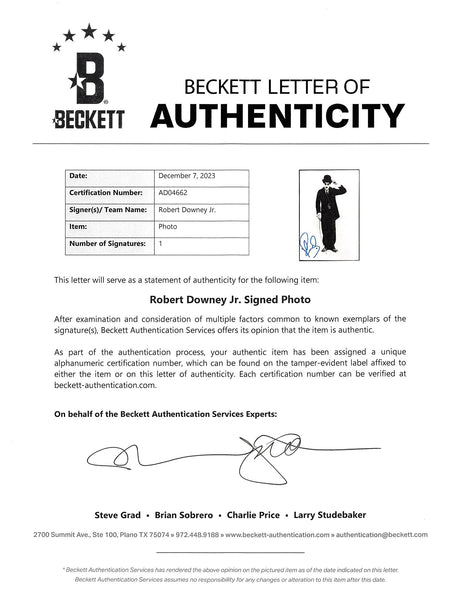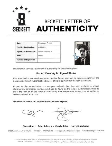 Robert Downey Jr. Chaplin Authentic Signed 8x10 Black & White Photo BAS #AD04660