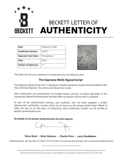 The Sopranos (11) Gandolfini, Falco, Imperioli +8 Signed Pilot Tv Script BAS LOA