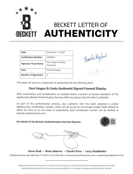 Paul Hogan & Linda Kozlowski Crocodile Dundee Signed Framed Display BAS #AE09645