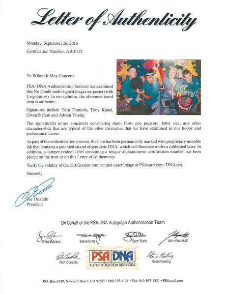 No Doubt (4) Stefani, Kanal, Dumont, Young Signed Spin Magazine PSA/DNA #AB10722