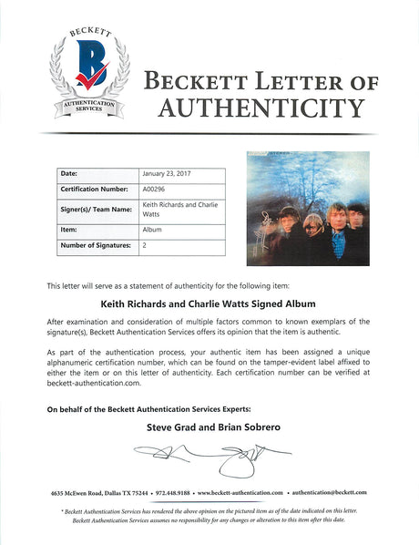 Rolling Stones Keith Richards & Charlie Watts Signed Album Cover W/ Vinyl BAS