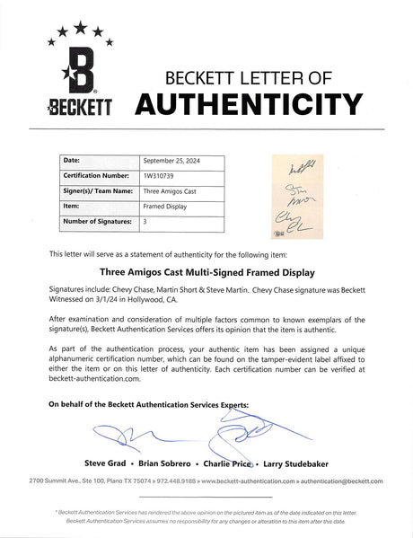 Three Amigos! (3) Chase, Martin & Short Signed Framed Display BAS #1W310739