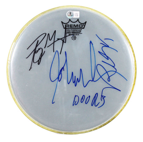 The Doors (3) Manzarek, Densmore & Krieger Signed 10 Inch Drum Head BAS #AE02871