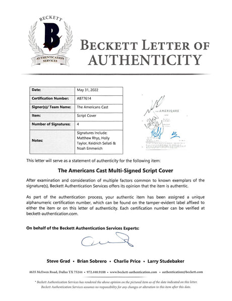 The Americans (4) Rhys, Taylor, Sellati +1 Signed Script Cover BAS #AB77614
