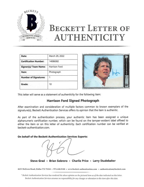 Harrison Ford Star Wars Authentic Signed 8x10 Photo Auto Graded 10! BAS Slabbed