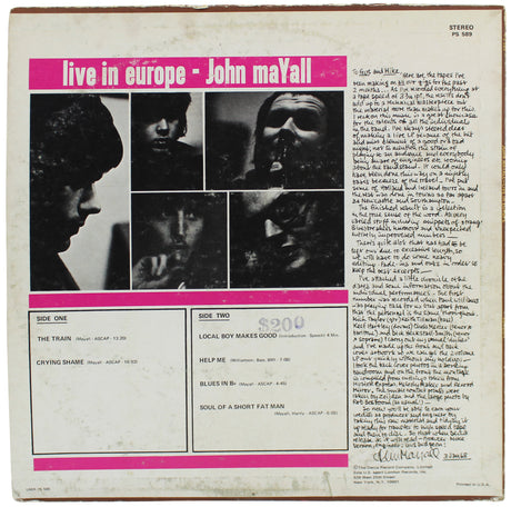 John Mayall Authentic Signed Live In Europe Album Cover W/ Vinyl PSA/DNA #S80783