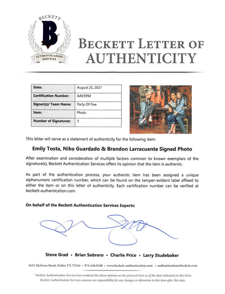 Party of Five (3) Tosta, Guardado & Larracuente Signed 8x10 Photo BAS #AA03994