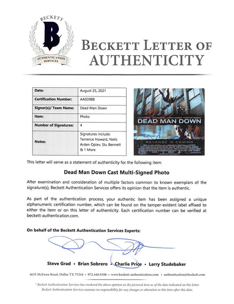 Dead Man Down (4) Howard, Oplev, Bennett +1 Signed 12x18 Photo BAS #AA03988