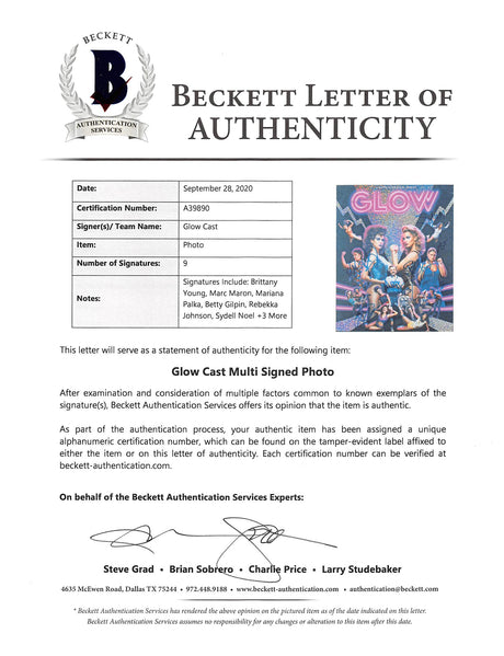 Very low stock (1 unit)$199Unit price /UnavailableGlow (9) Young, Maron, Palka, Gilpin +6 Signed 8x10 Photo BAS #A39890