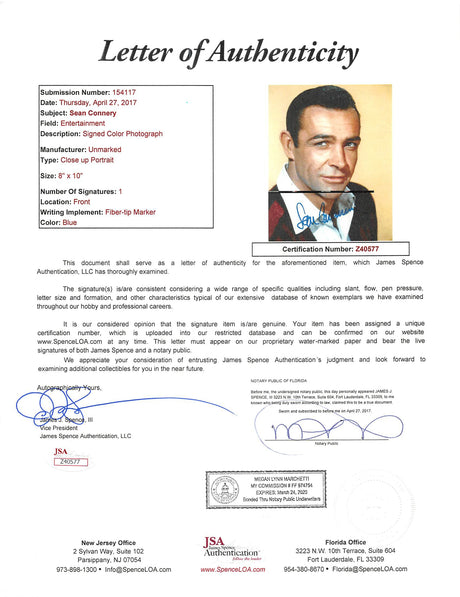 Sean Connery James Bond 007 Authentic Signed 8x10 Photo Autographed JSA #Z40577