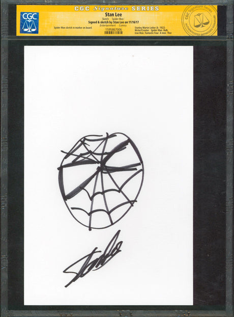 Stan Lee Marvel Authentic Signed 7x10.5 Spider-Man Hand-Drawn Sketch CGC & PSA