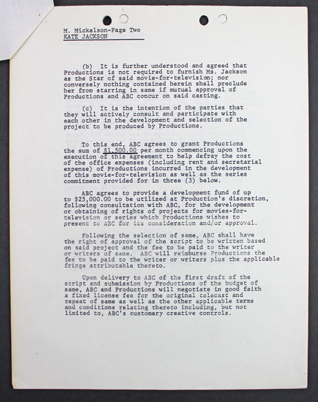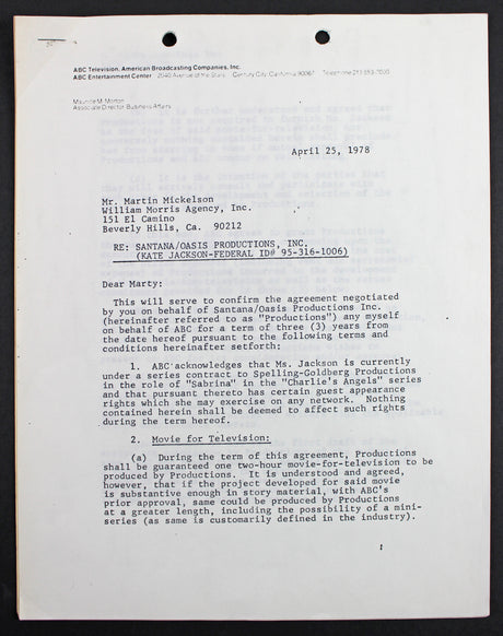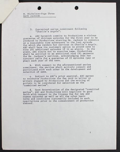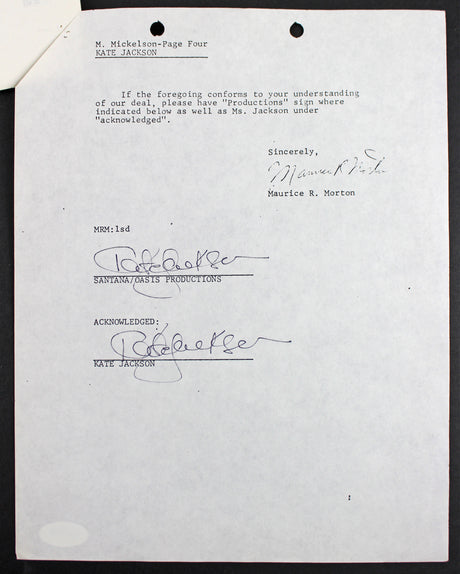 Kate Jackson Charlie's Angels 2x Signed April 28, 1978 4 Page Contract PSA