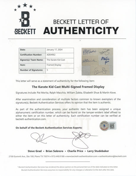 The Karate Kid (5) Morita, Macchio, Zabka, Shue & Kove Signed Framed Display BAS
