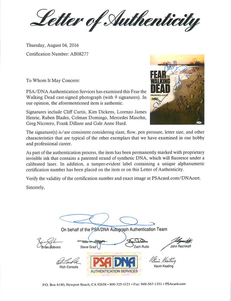 Fear The Walking Dead (9) Nicotero Signed 12x18 Movie Poster PSA/DNA #AB08277