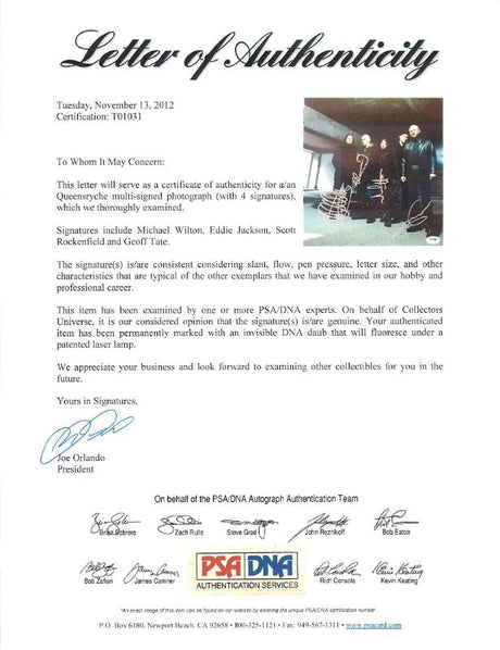 Queensryche- Wilton, Jackson, Rockenfield & Tate Signed 11X14 Photo PSA #T01031