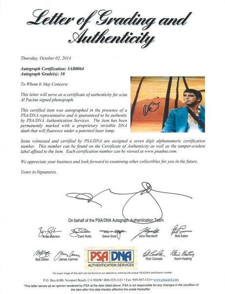 Al Pacino Scarface Signed 16X20 Photo Auto Graded Gem Mint 10! PSA/DNA #5A80064