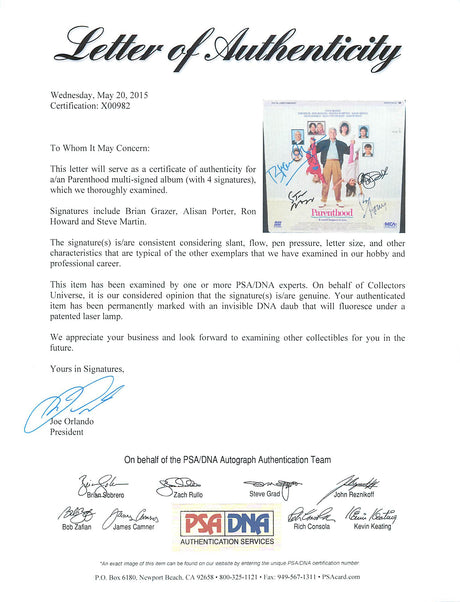 Parenthood Cast (4) Martin, Howard, Grazer & Porter Signed Laserdisc Cover PSA