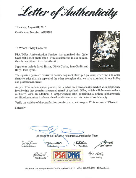 The Quiet Ones (4) Cooke, Claflin, Byrne Signed 12x18 Movie Poster PSA #AB08280