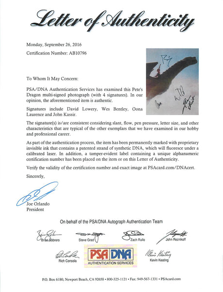 Pete's Dragon (Wes Bentley, David Lowery, +2) Signed 11X14 Photo PSA/DNA AB10796