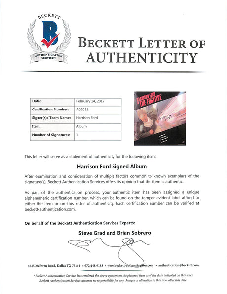 Harrison Ford Authentic Signed The Fugitive Laserdisc Cover w/ Disc BAS #A02051