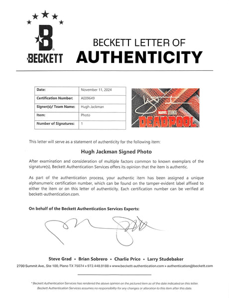 Hugh Jackman Deadpool & Wolverine Authentic Signed Framed 16x24 Photo BAS