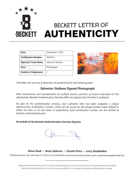 Sylvester Stallone Rocky II Authentic Signed Horizontal Belt 12x16 Photo BAS