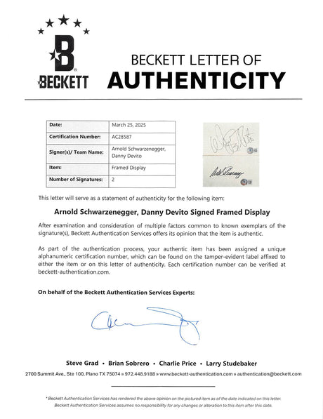 Arnold Schwarzenegger & Danny DeVito Twins Signed Framed Display BAS #AC28587