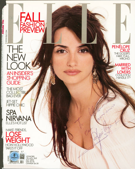 Very low stock (1 unit)$189Unit price /Unavailable Penelope Cruz "To Melanie" Signed Elle Magazine Cover July 2002 BAS #BR43968
