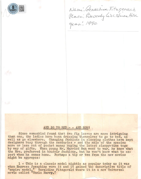 Very low stock (1 unit)$1,229Unit price /Unavailable Geraldine Fitzgerald Uncle Harry Authentic Signed 8x10 Photo BAS #BN29183