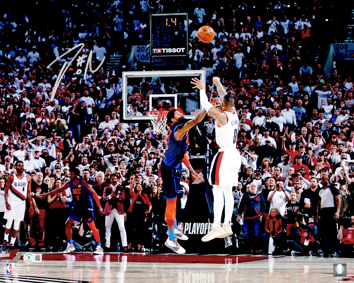Damian Lillard Autographed 16x20 Photo Portland Trailblazers Playoff Buzzer Beater Winner Over Paul George Beckett BAS Witness Stock #214832 is backordered and will ship as soon as it is back in stock.
