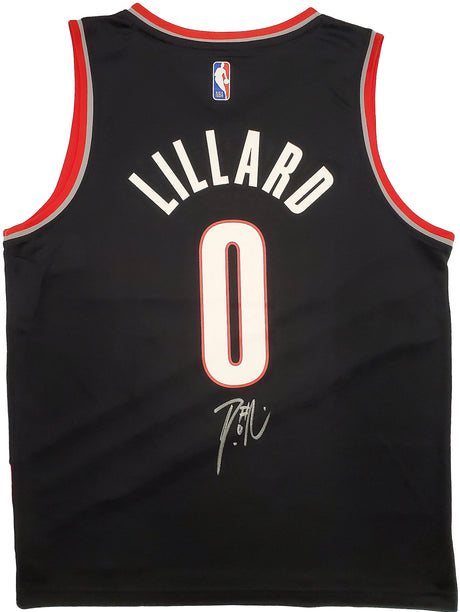Portland Trail Blazers Damian Lillard Autographed Black Nike Jersey Size L Beckett BAS Stock #195898