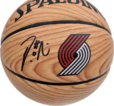 Damian Lillard Autographed Official Spalding Portland Trail Blazers Wood Logo Basketball Beckett BAS Stock #195277