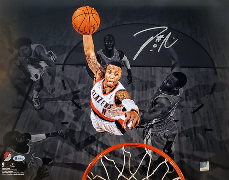 Damian Lillard Autographed 16x20 Photo Portland Trail Blazers Spotlight Dunk Beckett BAS Stock #195897