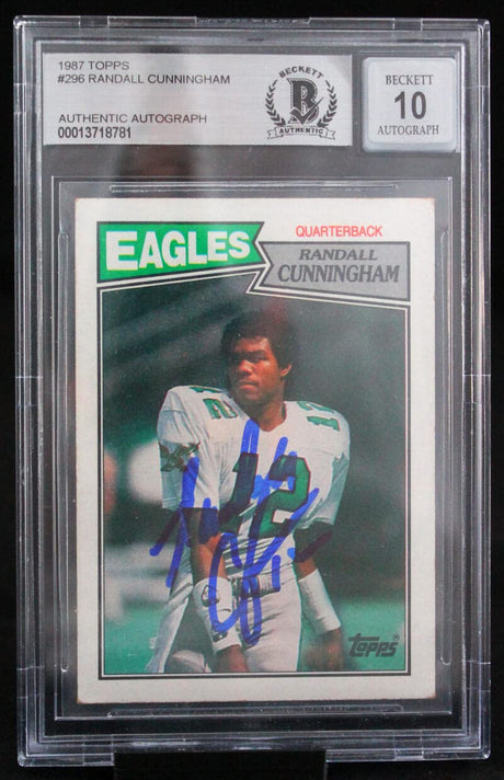 1987 Topps #296 Randall Cunningham Philadelphia Eagles BGS Autograph 10