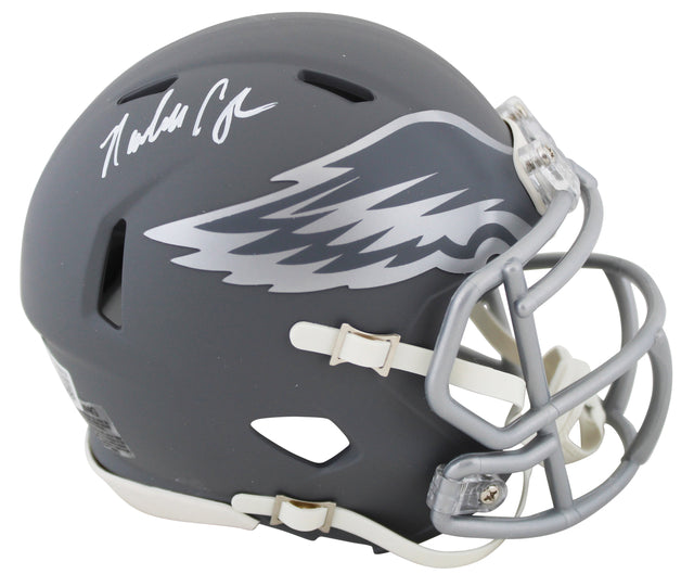 Own a piece of Philadelphia Eagles history with this Randall Cunningham Autographed Alternate Slate Speed Mini Helmet. A must-have for dedicated Eagles fans and serious memorabilia collectors, this signed mini helmet is authenticated by Beckett Authentication Services (BAS), ensuring 100% authenticity.