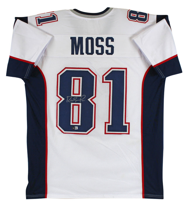 Own a piece of football history with this Autographed White Pro Style Jersey, hand-signed by legendary wide receiver Randy Moss during his time with the New England Patriots. This premium collectible is ideal for devoted Patriots fans and memorabilia collectors alike.