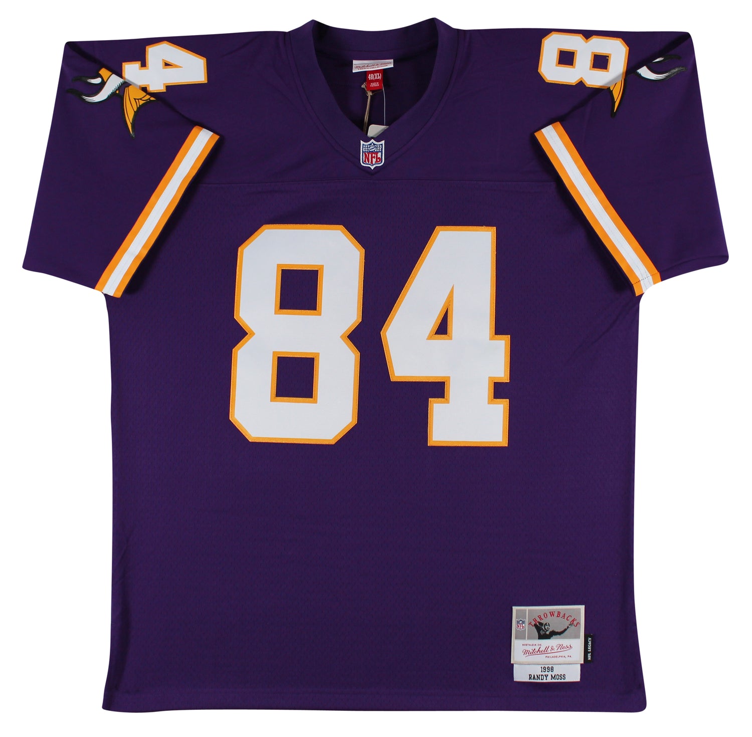 Own a piece of football history with this Autographed Purple Mitchell & Ness Jersey, personally signed by Randy Moss of the Minnesota Vikings. A must-have for serious collectors and Vikings fans, this jersey is a tribute to one of the greatest wide receivers in NFL history.