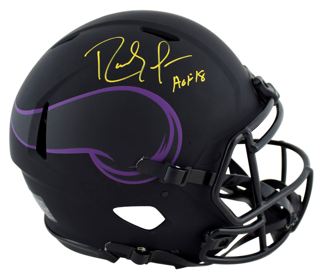 Own a piece of football history with this Autographed Alternate Eclipse Riddell Authentic Full-Size Speed Proline Helmet, personally signed by Randy Moss of the Minnesota Vikings. This exclusive collector's item features the inscription "HOF 18", commemorating Moss's induction into the Pro Football Hall of Fame in 2018. Authenticated through Beckett Authentication Services (BAS), this helmet is guaranteed 100% genuine.