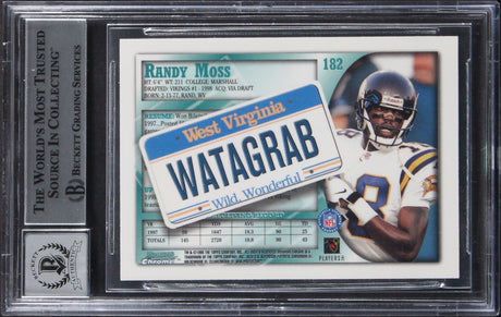 Randy Moss Signed 1998 Bowman Chrome Interstate #182 RC Card Auto 10 BAS Slabbed