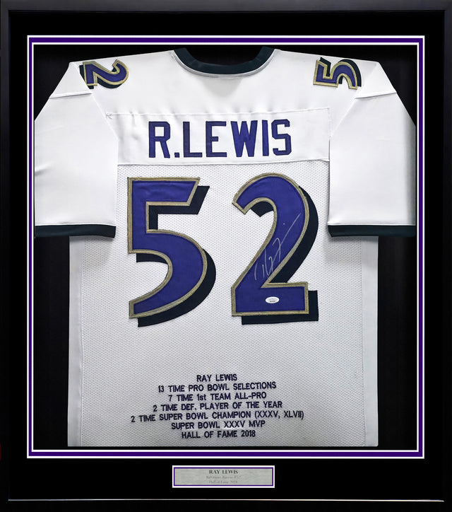 Baltimore Ravens Ray Lewis Autographed Framed White Jersey JSA Stock #252811