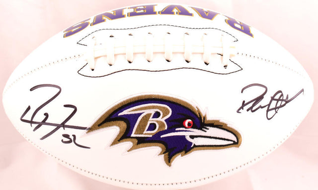 Deion Sanders Ray Lewis Signed Baltimore Ravens Logo Football- Beckett W Holo