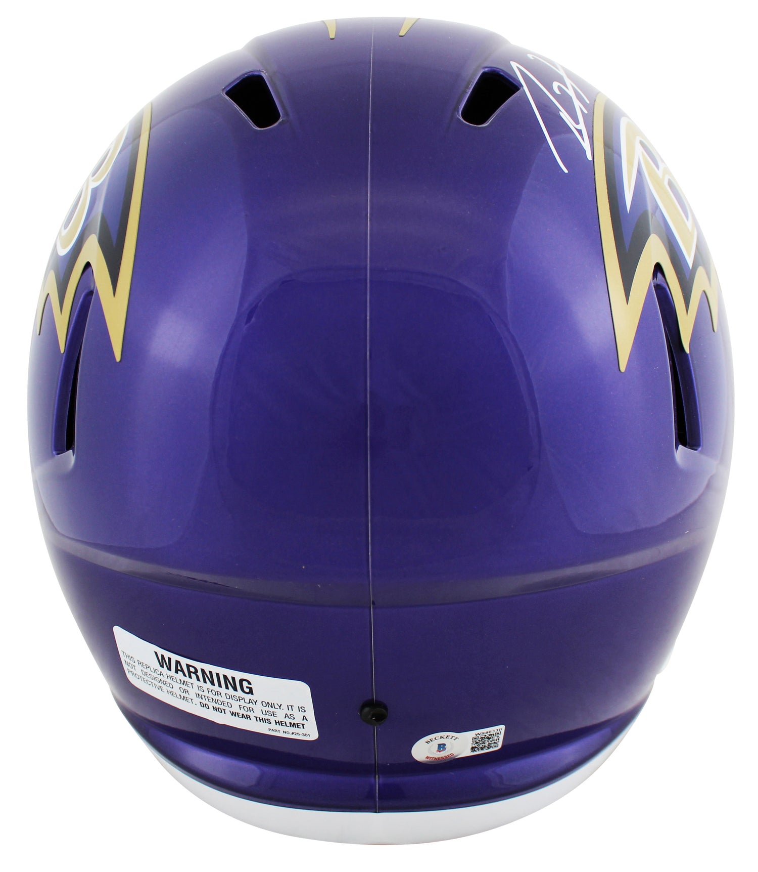 This helmet is accompanied by top-tier authentication from Beckett Authentication Services (BAS), ensuring that your investment is both genuine and verifiable. As part of the BAS Witnessed Protection Program, a certified Beckett representative was present during the private signing, offering peace of mind and maximum value for collectors. Each signature is unique—while the photos are representative, expect slight variations in autograph placement and strength that add to its authenticity and charm.