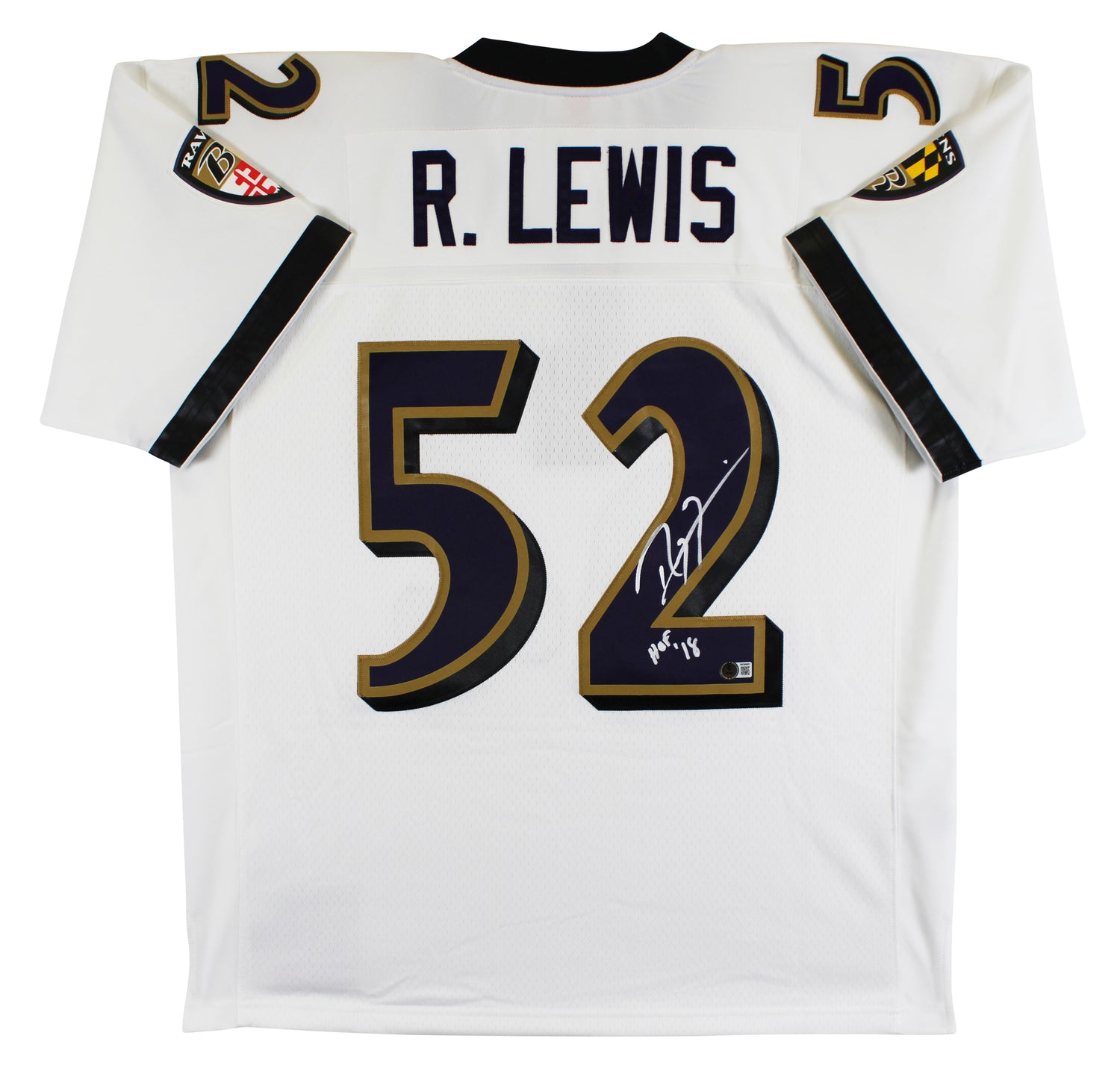 Ravens Ray Lewis Authentic Signed White Mitchell & Ness Jersey BAS Witnessed