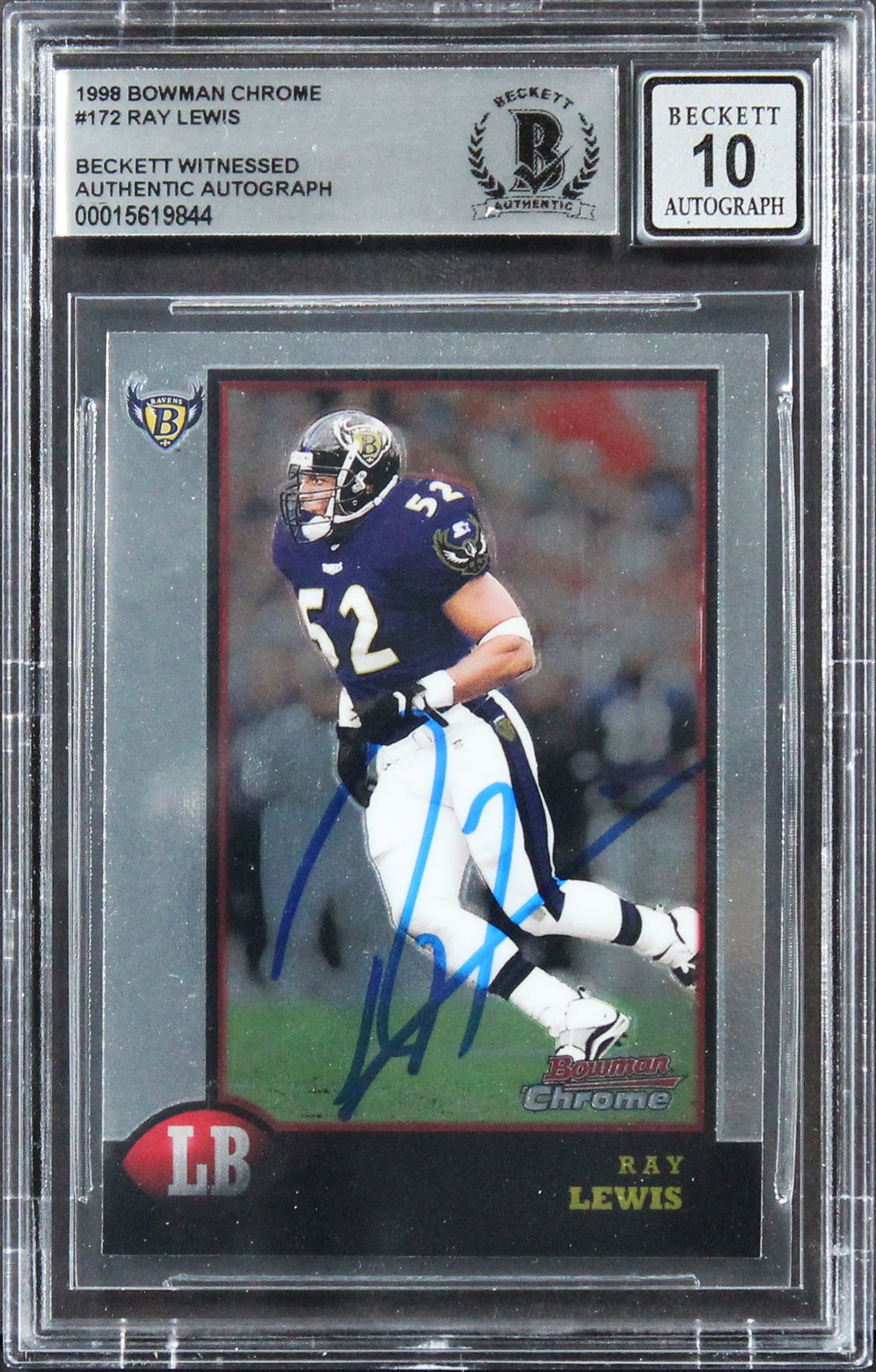 Ravens Ray Lewis Signed 1998 Bowman Chrome #172 Card Auto Graded 10! BAS Slabbed