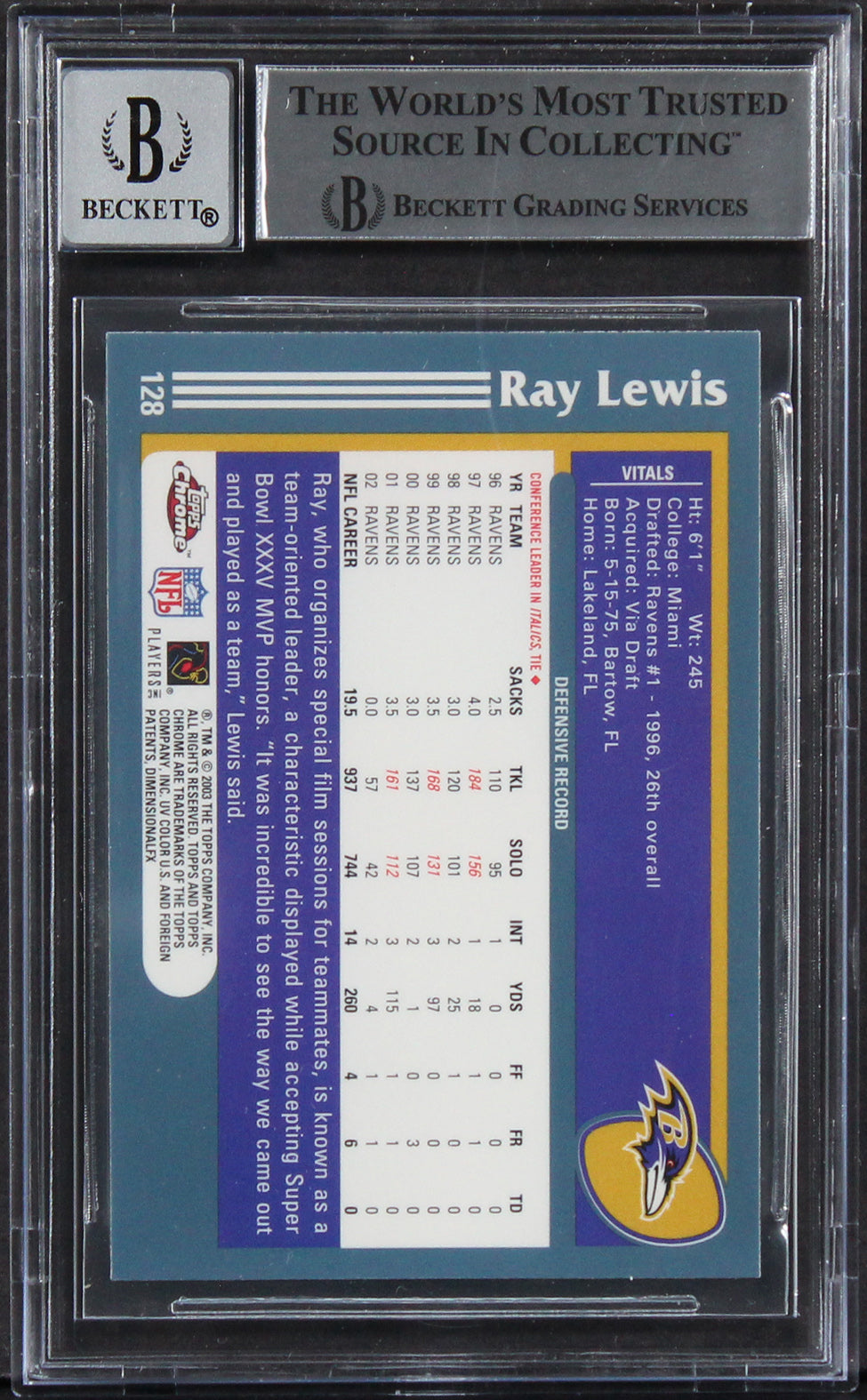 Ravens Ray Lewis Signed 2003 Topps Chrome #128 Card Auto 10! BAS Slabbed is backordered and will ship as soon as it is back in stock.