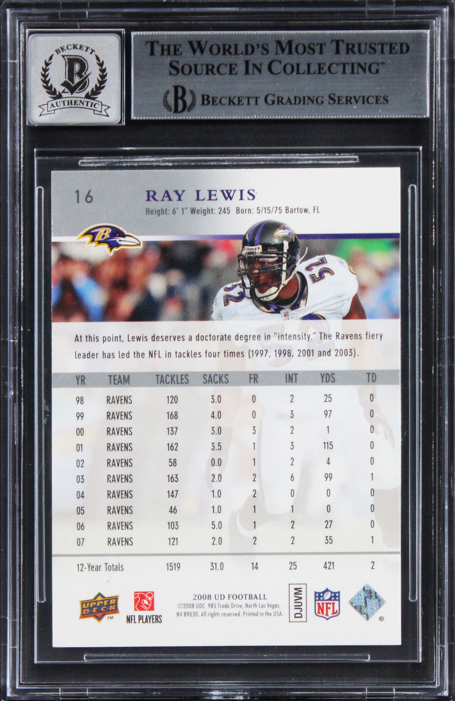 Ravens Ray Lewis Signed 2008 Upper Deck #16 Card Auto Graded GM 10! BAS Slabbed