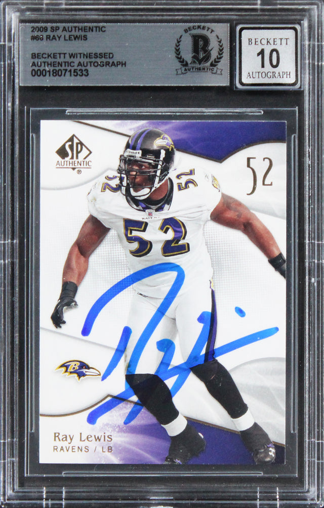 Ravens Ray Lewis Signed 2009 SP Authentic #66 Card Auto Graded 10! BAS Slabbed