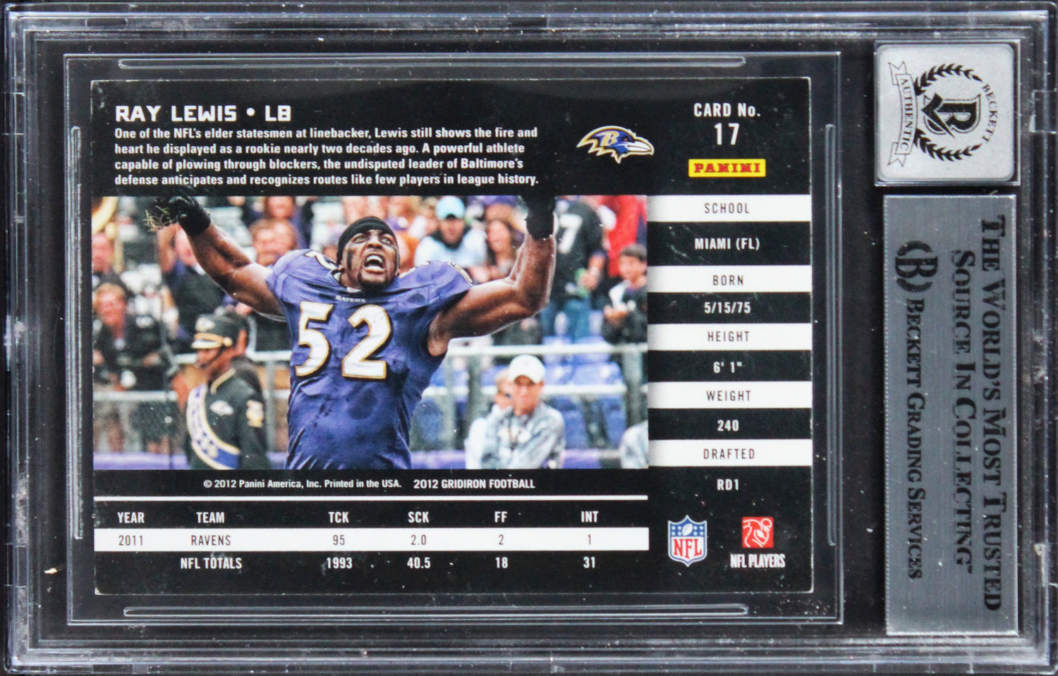 Ravens Ray Lewis Signed 2012 Gridiron #17 Card Auto Graded Mint 10! BAS Slabbed