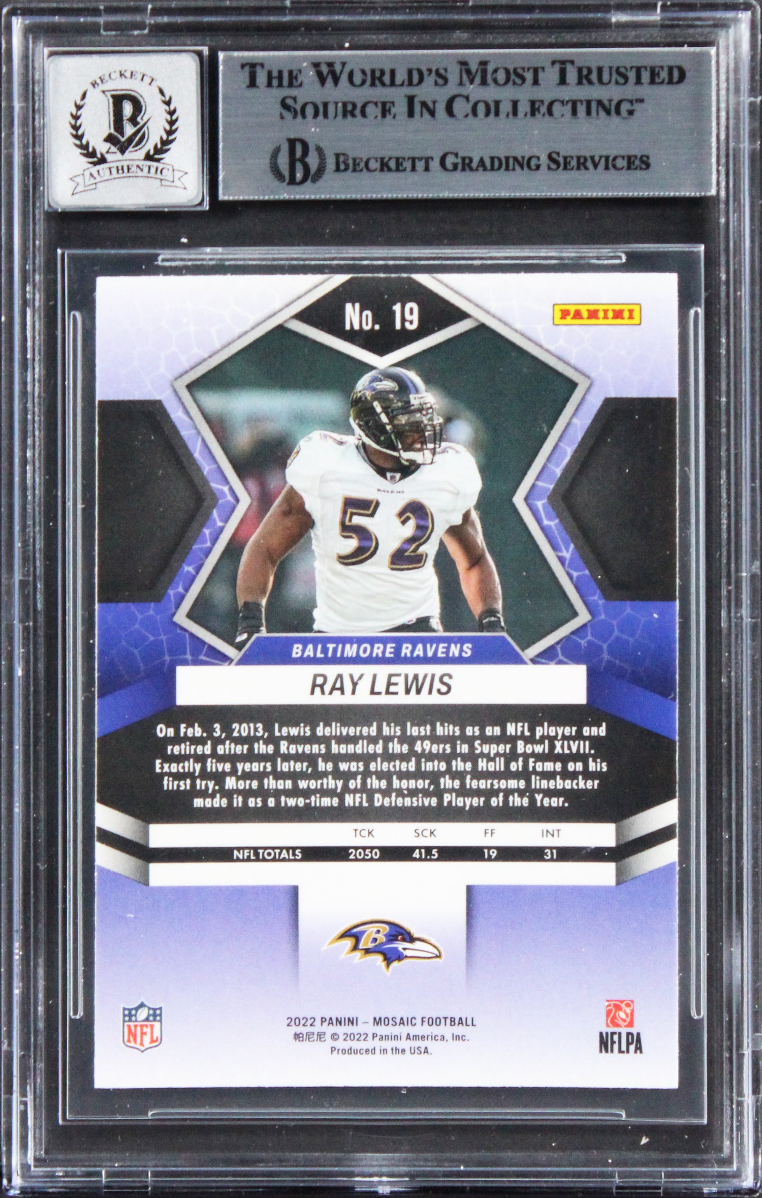 Ravens Ray Lewis Signed 2022 Panini Mosaic #19 Card Auto Graded 10! BAS Slabbed